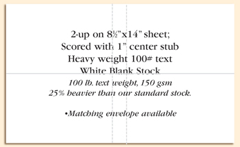 2-up on 8 ½″ x 14″ sheet; Scored with 1″ center stub