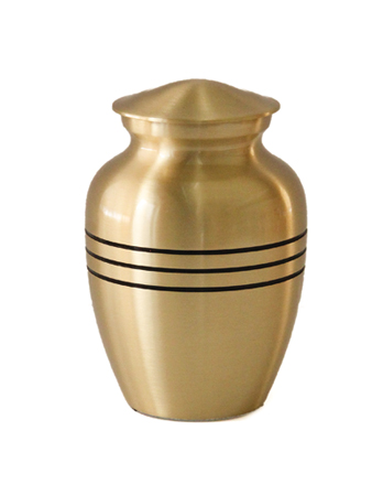 This handcrafted urn is made of metal with a threaded lid